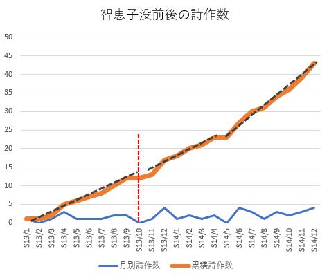 智恵子が亡くなった前後で、詩作の数は変化がありません。