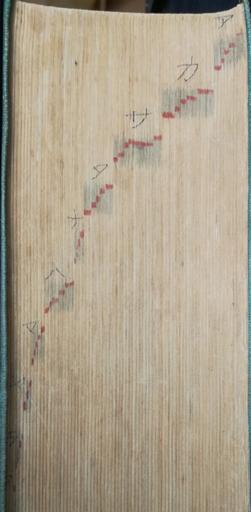 几帳面なことに、小口に「あいうえお…」と赤色でマークを付けています。