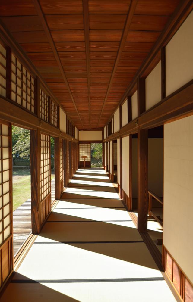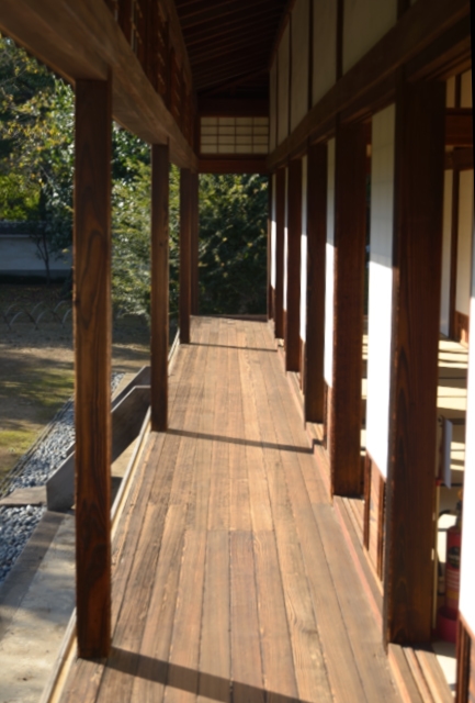 濡れ縁から障子で隔てた廊下に相当する所は畳敷きです。藩主が歩くところだから、ということでしょうか。あるいは大きな行事のときには中下級の武士がここに座る、ということを考慮してのことなのでしょうか。