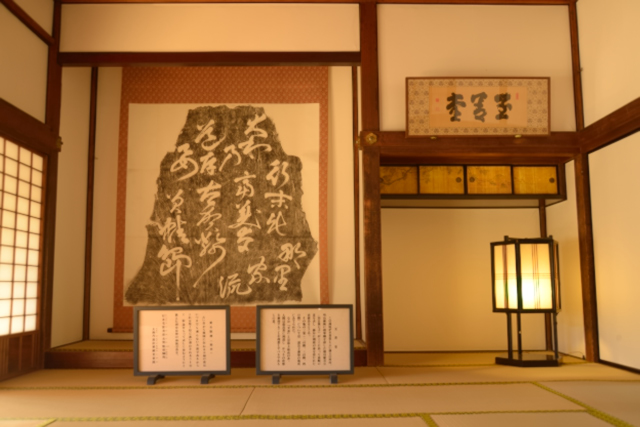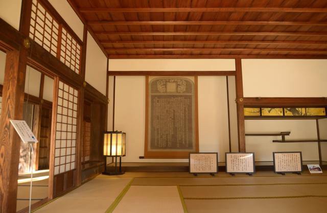 藩主がお出ましの時はここに着座します。掛け軸は弘道館記の碑を拓本にとったものです。
