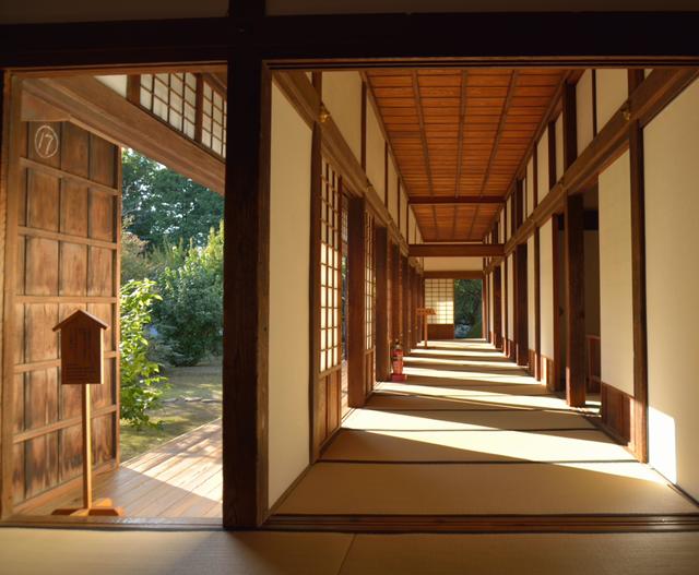 室内の写真を多数撮る、という経験は、重要文化財の写真を取り出してから初めての経験でした。現在の住居と比べると、部屋のサイズが格段に大きく、屋根が深いため、室内に光が届きにくく、とても暗いです。このため、室外の一部が写ると、室内外の明暗差が極めて大きくなってしまいます。対策として、上記の写真では、画像データの"現像"段階でアクティブD-ライティングを掛けています。また、レンズの歪みが目立つ写真が出てしまいました。"現像"段階でレンズのひずみの補正は掛けて少しは改善していますが、それでも残ります。さらに、今回の写真の多くが手持ちのレンズの最もワイド側である24mmで撮っており、パースペクティブが強まって、垂直・水平の傾きが目立ちます。ある程度はテクニックで目立たないようにできるはずですが、私にその技術がなく、残念な結果です。撮影の技術を高めること、良いレンズを使うこと、この二つが課題だなと、感じた今回の撮影でした。また、私のウェブサイトに載せる様な小さなサイズではなく、大伸ばしをしたときには画像の荒れが目立ちます。室内が暗いのに三脚が使えない(重要文化財に傷を付けたら大変です)ため、手ぶれを防ぐのに感度を上げたためです。手ぶれを防いで感度はあまり上げないようにする、これも課題の一つです。