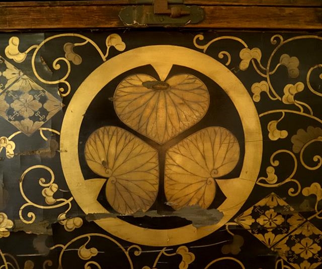 中央の三つ葉葵は、葉の模様も刻まれています。