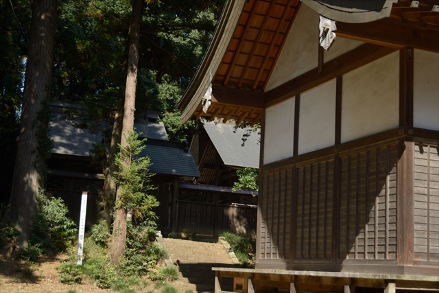 撮影自体は、ハチが時々飛んで来て、入口の"スズメバチ注意"の垂れ札を思い出して"こわごわ"という感じで、なかなか大変でした。拝殿の前だけならたいして気になるものではないのですが、本殿裏手の誰もいないところで大きめのハチが近づいてくると怖いものです。撮影中に、地元の方でしょう、二、三組、拝殿の前で手を合わせていらっしゃるのを目にしました。近くを通りかかったのでお参りする、といった様子で、地元の方には身近なところのようでした。