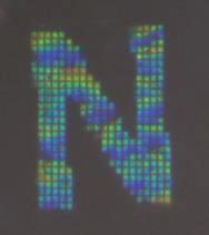 1万円札の表側の左下にホログラムが印刷されていて、その中に、"NIPPON"の文字がいくつかあります。その一つ(おそらく一番小さい文字サイズのもの)の字体が微小な正方形を並べたものであり、一つの正方形は一辺が10μmで、それが1μmの空隙をおいて配置されている、というものだそうです。