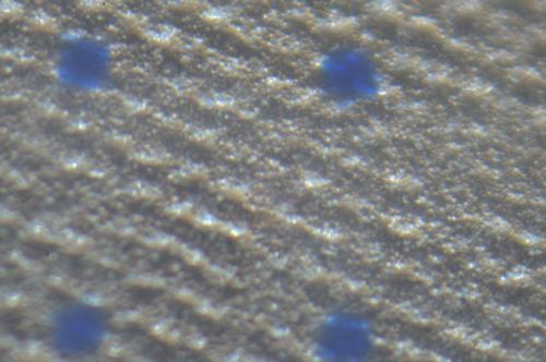 写真3の下側にあるドットは1mm間隔で、その部分を拡大しています。ドットが4個見えます。
